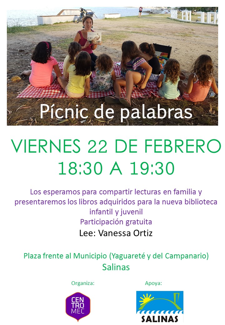 Centros MEC Canelones y el Municipio de Salinas les invitan a un Picnic de palabras donde compartiremos lecturas en familia y presentaremos el nuevo proyecto de la biblioteca infantil y juvenil de Salinas y compartiremos los libros adquiridos para su conformación.