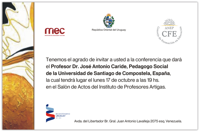 Se realizó conjuntamente con en Consejo de Formación en Educación de ANEP, organismo que conduce la transición hacia el Instituto Universitario de Educación creado en la LGE 18.437 donde uno de sus cometidos es la formación en educación y la formación de los profesionales de la educación (maestros, profesores, educadores sociales y otros que la educación requiera). Asimismo han comenzado cursos de la Carrera Educador Social en el IPA, CERP de Maldonado e IFD de Artigas.