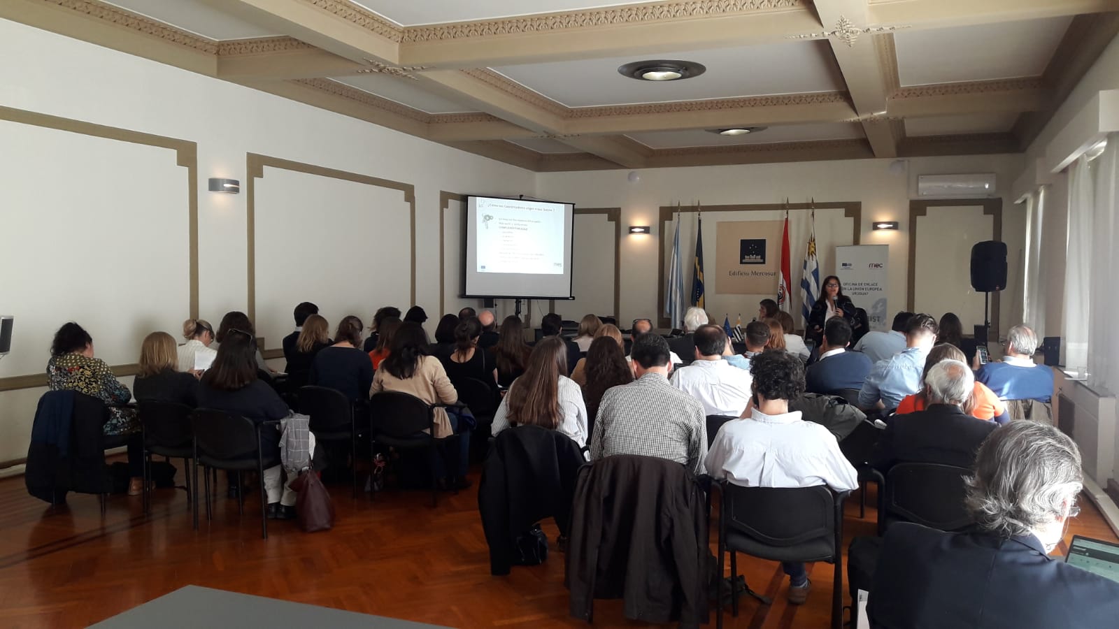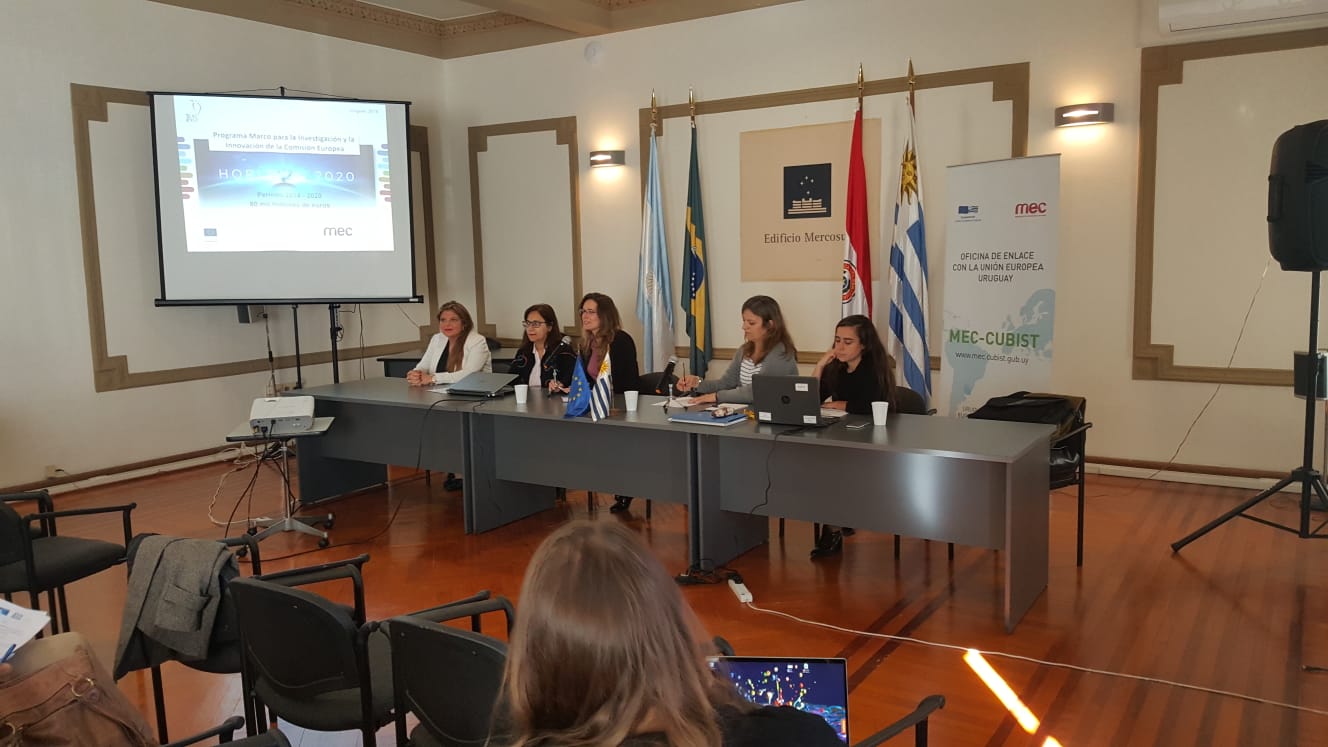 En la mañana, se realizó un taller a sala llena, al cual asistieron representantes del sector público y privado, investigadores y empresarios. El objetivo del mismo fue brindar información sobre los nuevos llamados del programa de Horizonte 2020, en particular aquellos que comprenden acciones de Cooperación Internacional y los que específicamente promueven la participación de América Latina y el Caribe. Las áreas que se hicieron mención fueron: Seguridad Alimentaria, Agricultura y Silvicultura, Investigación Marina y Bioeconomía, TICs y Salud.