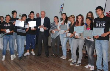 Como es habitual, se hizo la entrega de certificados a los jóvenes y en esta oportunidad contaron con la presencia del Intendente Coutinho, quien además cumplió con un ritual que impuso desde su primera visita, y ya se transformó en un clásico. Desafió al campeón de los torneos de ping-pong de Cecap.
