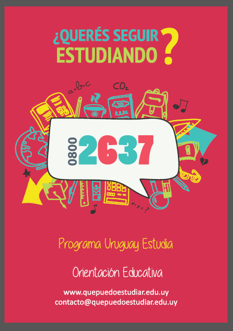 Si querés seguir estudiando y no sabés dónde hacerlo, podés usar la línea telefónica gratuita 0800 2637 de lunes a viernes de 9:00 a 18:00 horas.